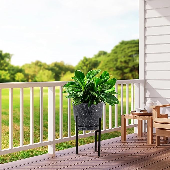 - [Sturdy PP Material with Granite Texture] The large modern flower pot for indoor plants are made of 5.8mm thick and sturdy plastic. 12inch large modern Indoor outdoor planters in a durable materials and Minimalism styles. The unique plants pots that are fashionable and functional, the minimalist style which fit for any modern furniture or home decor at your living room, bedroom, kitchen, office or even garden, porch, and patio.
