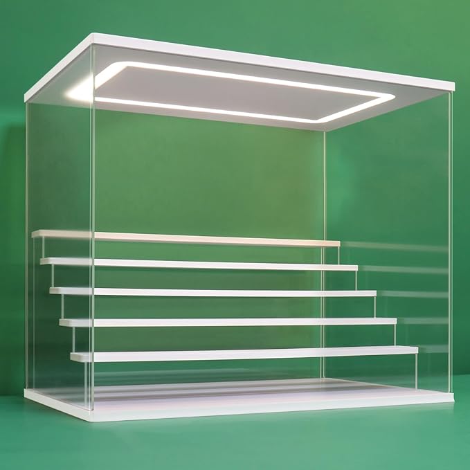 NONEMEY Clear Acrylic Display Case Stand with LED Light 2/3/4/5/6 Tier Storage Box Showcase Dustproof Organizer Box for Collectibles (White 6 Tiers 19.6 * 12.5 * 16.5inch)