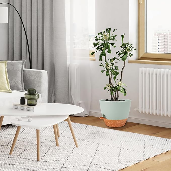 - 【Excellent Drainage Holes and Watering Lip】These pots for plants come with multiple drainage holes in the bottom. The holes and watering lip provide an air circulation system for the plant roots, which greatly reduces the problem of root rot of plants in a closed environment. The independent watering lip replenishes water for plants, so that water does not have to pass through the plant itself, At the same time, it is convenient to observe the current water level.