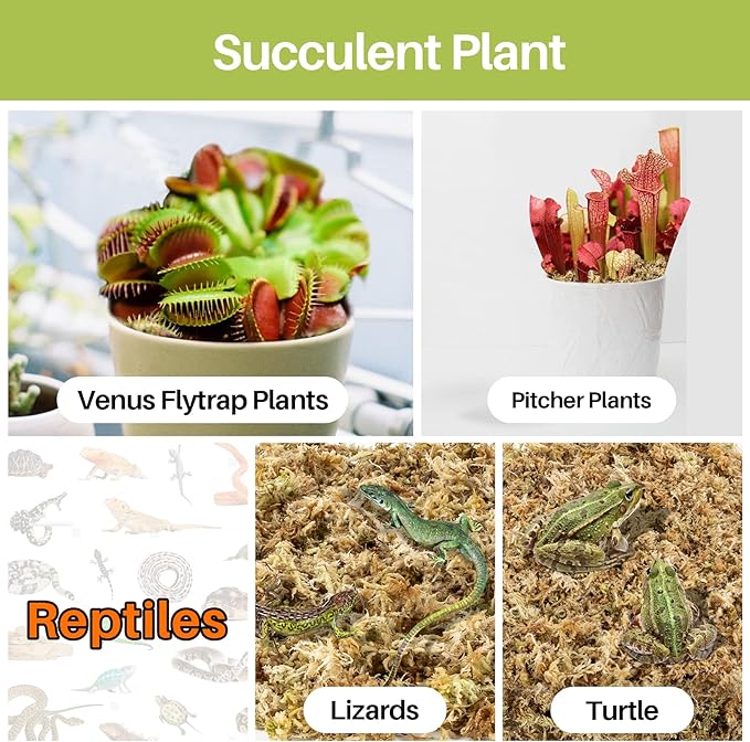 - Good substrate - Sphagnum Moss can be mixed with peat, perlite to improve the air breathability and moisturizing properties of the substrate.Our sphagnum moss is good substrate for reptiles,moss made slightly moist and put in the rearing box to provide some humidity,material for reptiles to burrow and also helps with shedding.
