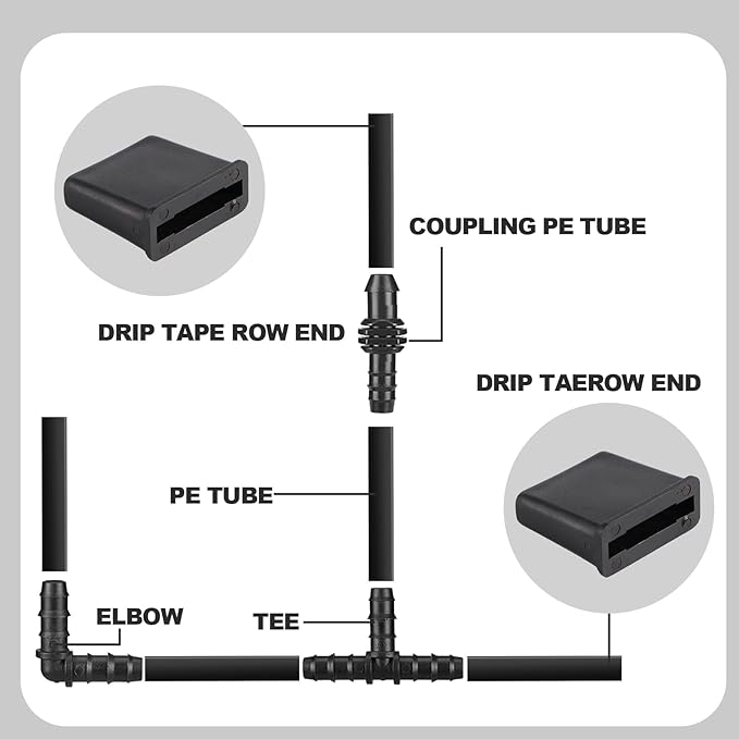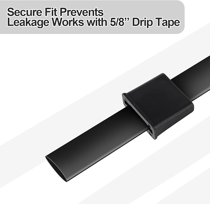 - Easy to Use: Thread the drip tape through the end of the closed narrow side of the tape end, fold the drip tape twice and insert it into the broad side of the end of the drip tape row, slide the end of the drip tape row over the drip tape with the end folded.