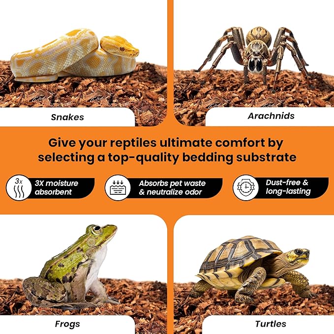 - 🥥Reptile & Amphibian Bedding: Upgrade your pet's home with our top-notch reptile bedding substrate. It absorbs moisture three times better than regular types, maintaining humidity in your pet's home