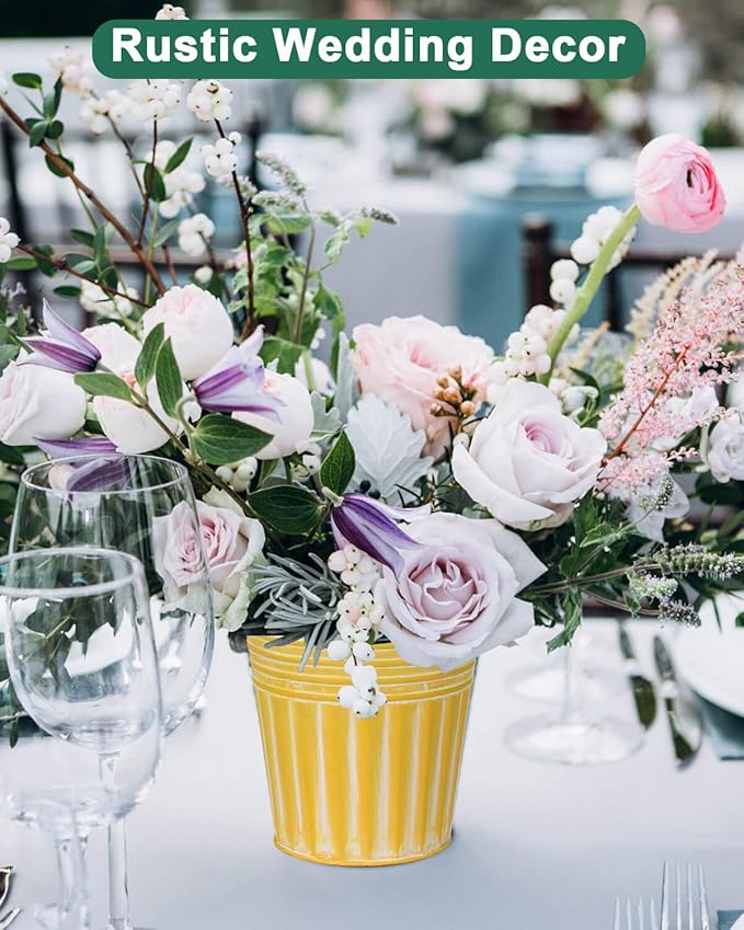 - 【Drain Hole with Rubber Plug】The yellow metal pots for plants have a drain hole at the bottom for drainage, yellow flower pot coming with a rubber stopper for avoiding water leakage. Great for planting or storing household items.
