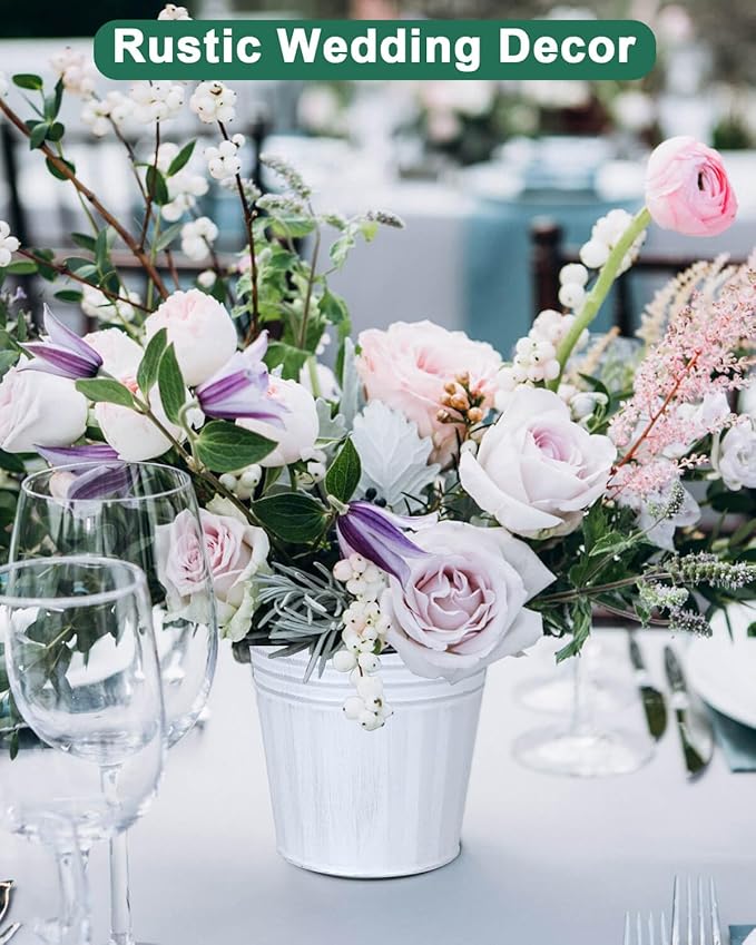 vensovo 6 Inch White Metal Rustic Flower Pots - 6Pcs Galvanized Planters with Drainage Hole and Rubber Plug, Rustproof Metal Bucket Plant Pots Farmhouse Vintage Style for Decor