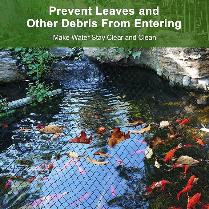 - Provide All-around Protection for Ponds Koi Fish: Are you annoying with the falling leaves and other debris from your pond or pool? Are you worry about the pond koi, fish, goldfish arrested by blue heron birds, cats and other predators? From now on, you don't have to worry it any more. Our pond netting for koi ponds will provide full protection for your koi, fish, goldfish in all seasons and keeping pond always clean and beautiful all year round