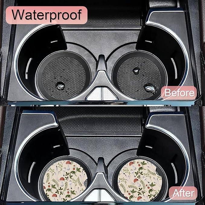 - Material:Cork coaster protects your car from spills and stains, absorbs any moisture or liquid that may spill from the cup, keeps your car cup holder dry and clean.