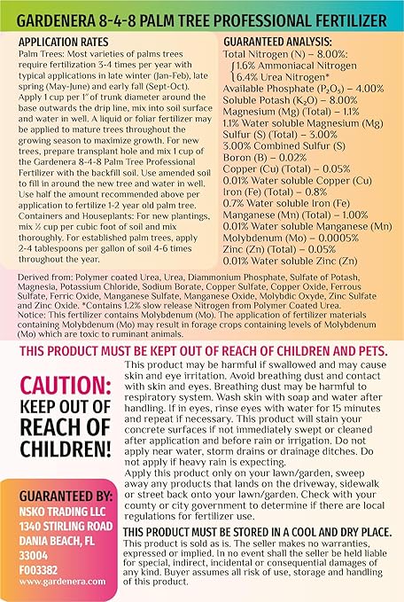 - 🏡 This versatile plant food is suitable for both in-ground and container plants, making it perfect for use in gardens, landscapes, and indoor plantings. Whether you have a majestic palm tree, a colorful ixora shrub, or a stunning ornamental plant, this plant food will provide the essential nourishment they need to thrive in any setting.
