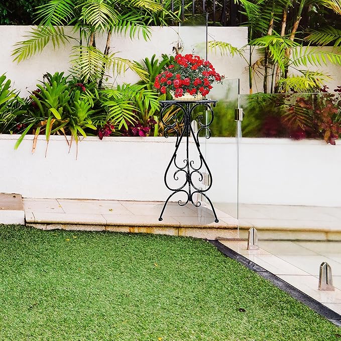 - ❀[More Usage Scenarios]This elegant plant holders has round grid flat top, you can place this plant stand in the outside, inside, clearance, house, living room, balcony, deck or front door and display your large potted, succulent, fern, toys, books, coffee etc.