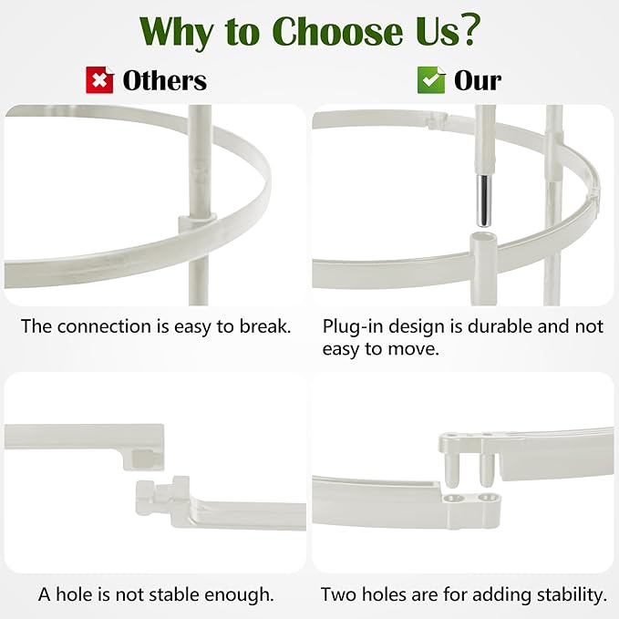 - 【Widely Application】Can help the growth of roses, clematis, ivy, jasmine, morning glory, tomatoes, cucumbers, eggplants, blackberries, beans, grapevines, long stems, fruit vines, houseplants, etc. The ergonomic design ensures that your plant's fruits and leaves do not weigh down the stem. TIP: Suitable for light and small plants, not recommended for overly large and heavy plants