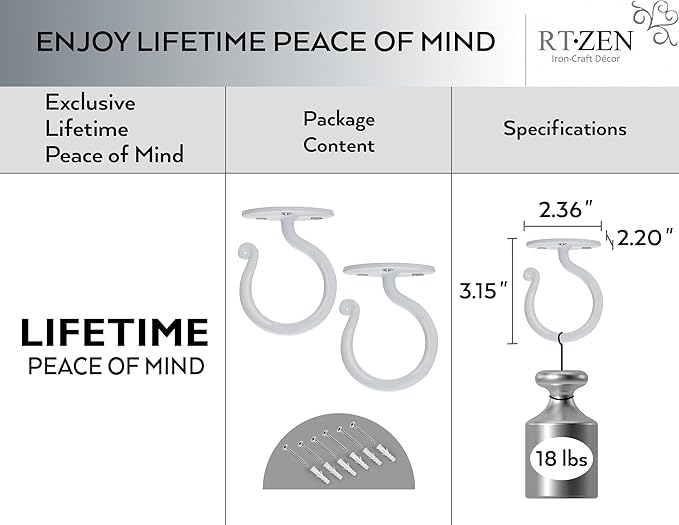 RTZEN Plant Hangers Outdoor or Indoor - Wrought Iron Metal Hanger Indoor Hook - Heavy Duty Wall Bracket Hooks for Hanging Plants Baskets Lanterns Wind Chimes - 2 Pack (White Ceiling Hooks)