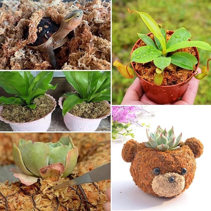 - 🎍【Ideal Medium & Substrate】: The orchid moss sphagnum can be mixed with perlite or potting soil to be used as a ideal growing medium for various plants like carnivorous plant, pitcher plants, venus fly traps, orchid, etc, which not only improves the soil but also provides the plant with the nutrients it needs to grow. It can also be used as substrate for reptile, to reduce pungent odors and provide a healthy living environment for reptiles