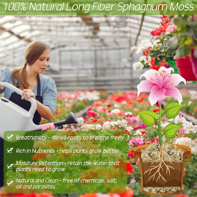 - 🎍【Natural Material】: Sphagnum moss is 100% natural long fiber sphagnum moss, which is carefully selected by hand, washed and natural dried by sunlight, natural and clean, maintaining nutrients while ensuring that there are no impurities such as twigs