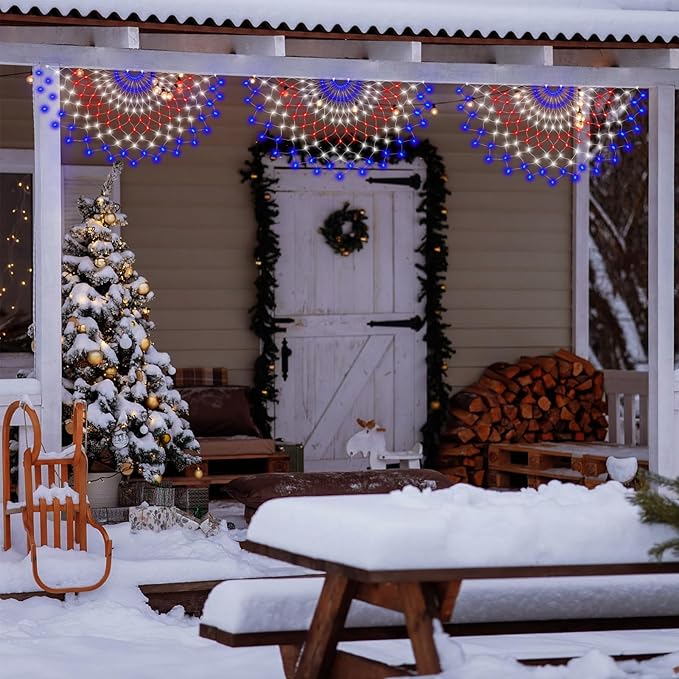 - Easy Installation and Versatile Display: Each 4th of July decorations light is equipped with a tail plug, which can be used in series with multiple light strings to meet various needs. 4 hooks are provided, the installation is very convenient, you can hang the led American lights anywhere you need to light. And turn on the power to light up. Their half fan shape makes them perfect for decorating any space, whether it’s your home, office, or event venue.
