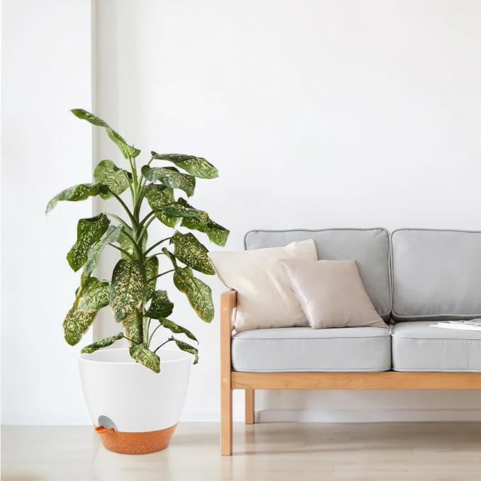 GARDIFE 12 inch planters, Plant Pots,Self Watering Pots, Large Plastic Flower pots with Deep Reservior and High Drainage Holes for Indoor Outdoor Plants and Flowers, White