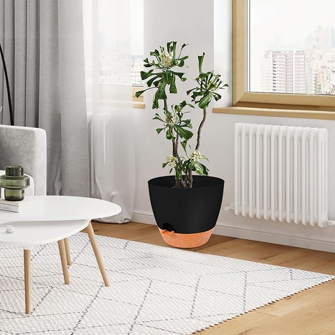 - 【Modern Simple Design】Pure black plant pot with brown bottom and matte finishing exterior, bringing out a modern minimalistic styled. the round planter pots are perfect for all small to medium-sized indoor house plants and herb spice gardens. Works well with orchid, cactus, succulents, aloe vera, basil, flowers, Peace Lily,air plants, snake plant.
