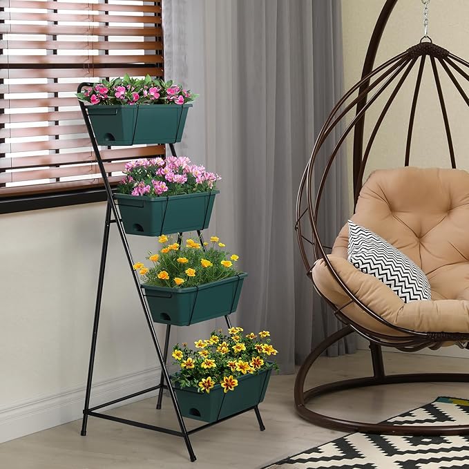 - 【4 Tier Raised Garden Bed】The vertical garden planter comes with 4 planting boxes that provide you with enough space to grow and divide vegetables, fruits, flowers and herbs to keep your garden organized. Whether indoors or outdoors, it is a good choice.