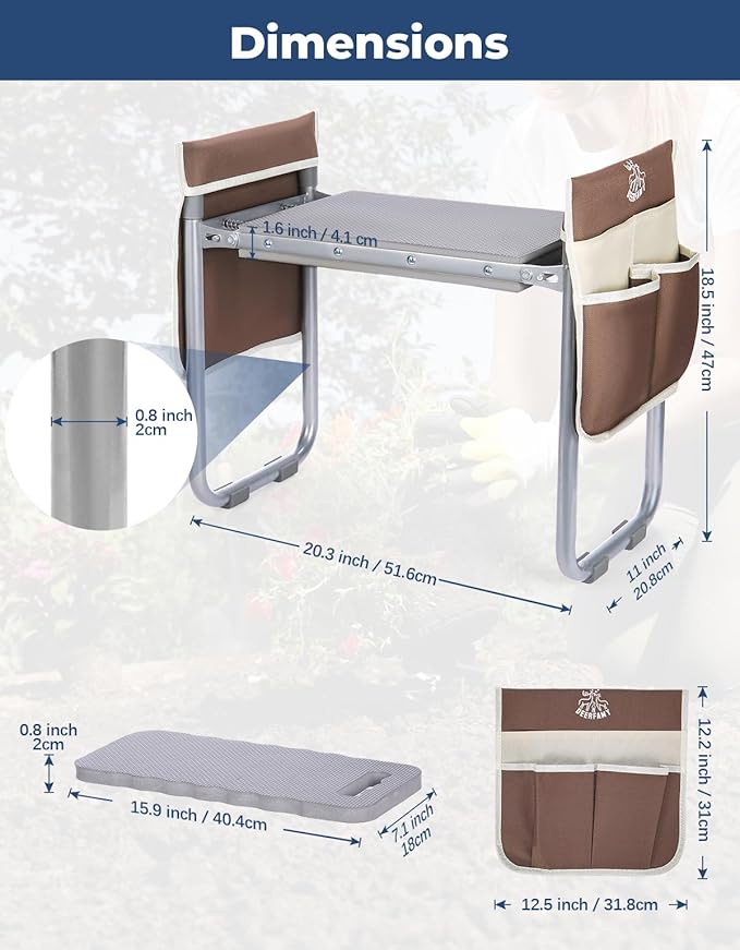 - 𝙀𝙡𝙙𝙚𝙧𝙡𝙮-𝙛𝙧𝙞𝙚𝙣𝙙𝙡𝙮 𝘿𝙚𝙨𝙞𝙜𝙣: An extra EVA kneeling pad is provided to ensure blood circulation and reduce pain in the knee when kneeling. Armrests on both sides ensure that the elderly can stand up easier after long hours of gardening, making it an excellent gift for grandparents.