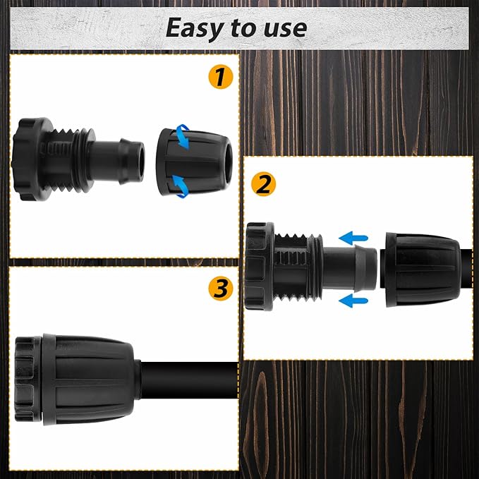 - Easy to Install: No complex steps or tools required. Just push the tube firmly onto the barb and tighten the nut. With good sealing, it will not leak, providing effective and lasting connections for your irrigation system.