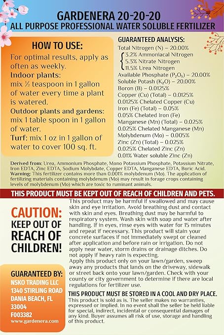 - 🌿 All-Season Solution for Year-Round Care: Whether it's spring, summer, autumn, or winter, Gardenera 20-20-20 is your go-to fertilizer for consistent and reliable plant nutrition. It ensures that your plants receive the necessary nutrients throughout the year for continuous growth and vitality.