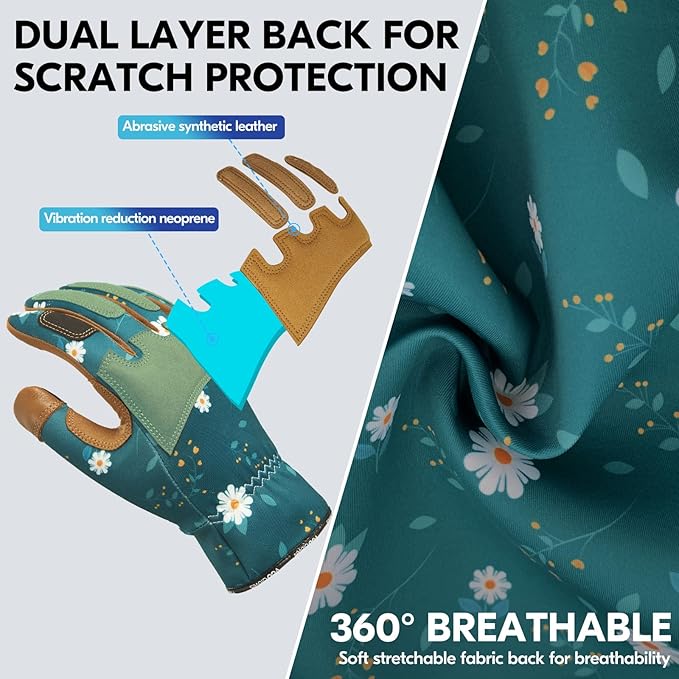 - MULTI-PURPOSE APPLICATIONS - Gloves with decent quality for weeding, mowing, branch cleaning, picking, pruning, landscaping, ranching, gardening, camping, assembly, DIY light duty daily works, regular construction, and outdoor activities; Selected gardening gifts for female gardeners.