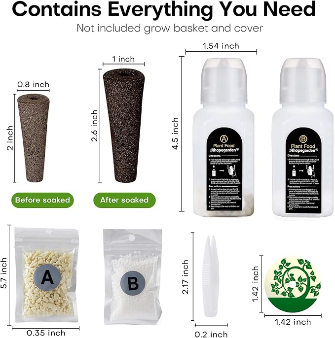 - Contains Everything You Need: 87pcs indoor garden kit with 40 grow sponges, 40 pod labels, 6 pieces total of 600ml A&B nutrients (including 4 fertilizer refills), 1 tweezers. You can plant anything you want in the hydroponic growing systems
