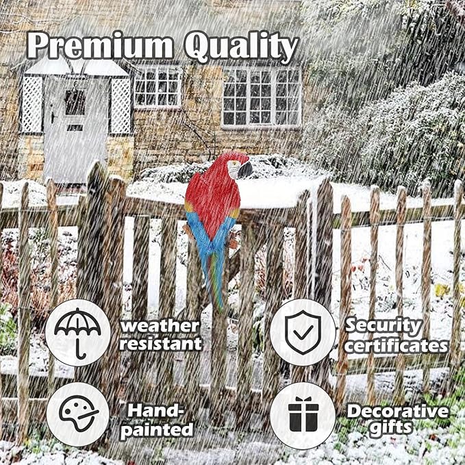 - 【Durable Material】- XKFLAUHM parrot sculptures for decor use premium eco-friendly resin material, sculpted and hand-painted by skilled technicians, non-toxic, safe, and durable. You don't put too much effort into maintaining it or worrying about it breaking. It will not deformation and fading in extreme weather such as Heavy snow days and sunny days