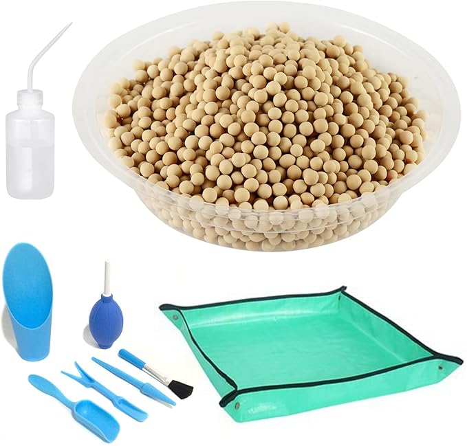 - Great Value Packages: What Do You Get? In this clay pabble set, you will get 4lb of ceramsite (size 4-5mm), a set of succulent tools, a water bottle and a waterproof PE planting mat to avoid soiling the floor when planting.