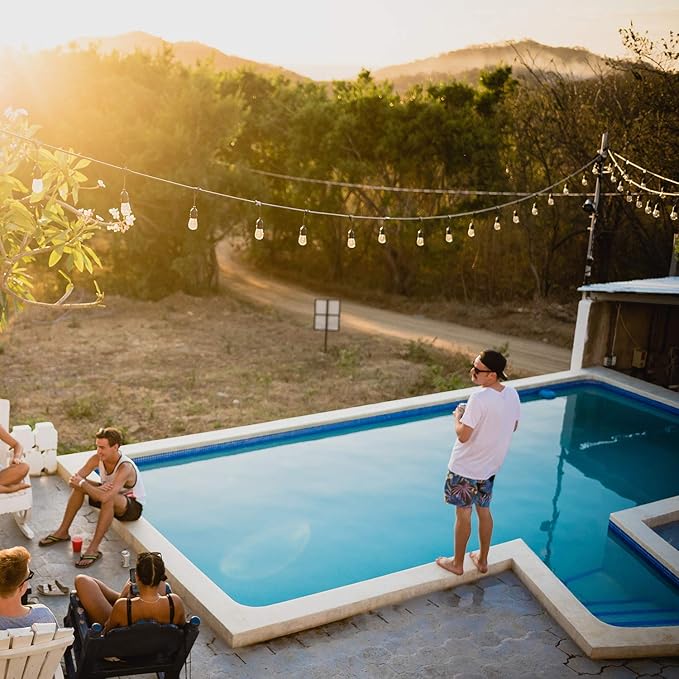 - Waterproof & Dimmable: Clear glass bulbs cast a warm white glow. Waterproof and dimmable edison light bulbs would be perfect decoration lights for your garden, backyard and balcony terrace, they are also an excellent decorative lighting for indoor wedding party