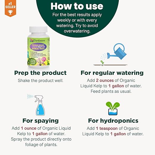 - π³π± Nurture Bonsai Brilliance: Elevate the artistry of your Bonsai trees with Bonsai-Specific Organic Liquid Kelp Fertilizer by Gardenera. Unleash the full potential of your miniature masterpieces and witness their exquisite growth and natural beauty.