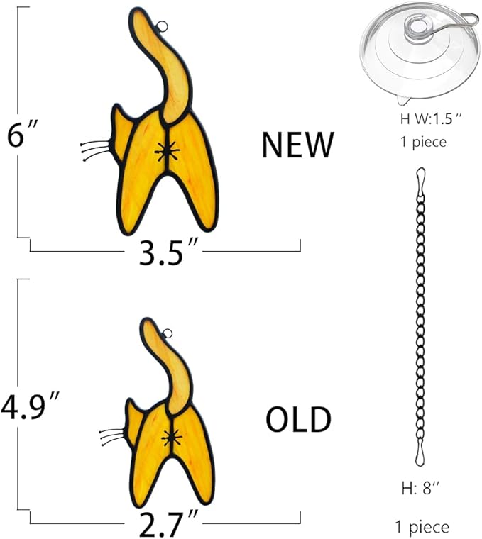 - OUR FRIENDLY CUSTOMER SERVICE: The cat memorial gifts equipped with long iron chains and suction cups, the length can be adjusted according to the decoration background. If you have any questions about our project or service, please feel free to contact us. We will try our best to solve any problem and provide you with the best customer service.SIZE:4.9"x2.7"