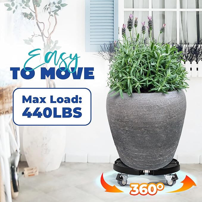 - HIGH CAPACITY OF 440 POUNDS: Our plant caddy with wheels heavy duty can hold up to 440 pounds of heavy plant pots or other bulky household items; It is strongly advised to put heavy items on with caution, rather than dropping them quickly