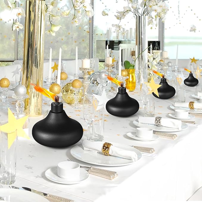 - ✿High Quality Metal Table Top Torches: Our Metal Table Top Torches made of premium metal. durable and lightweight. Each tabletop torches hold approximately 24 oz of fuel, allowing the burning time more than 20 hours .