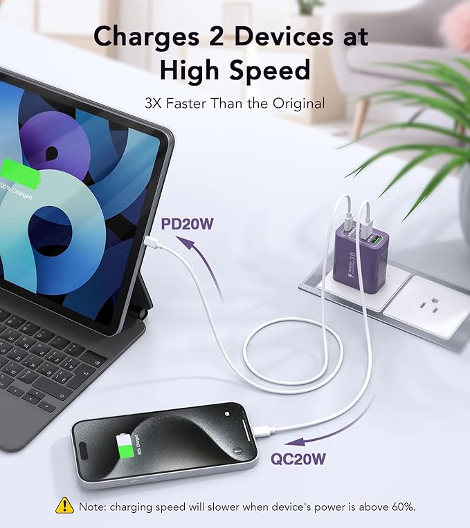 - Multiport Charging: The charger block has Dual USB-C ports and Dual USB-A ports. Allow users to charge phone, tablet and headphones simultaneously to minimize waiting time. It’s also a great space saver instead of taking up 4 wall outlet ports. The best replacement for your original usb charger