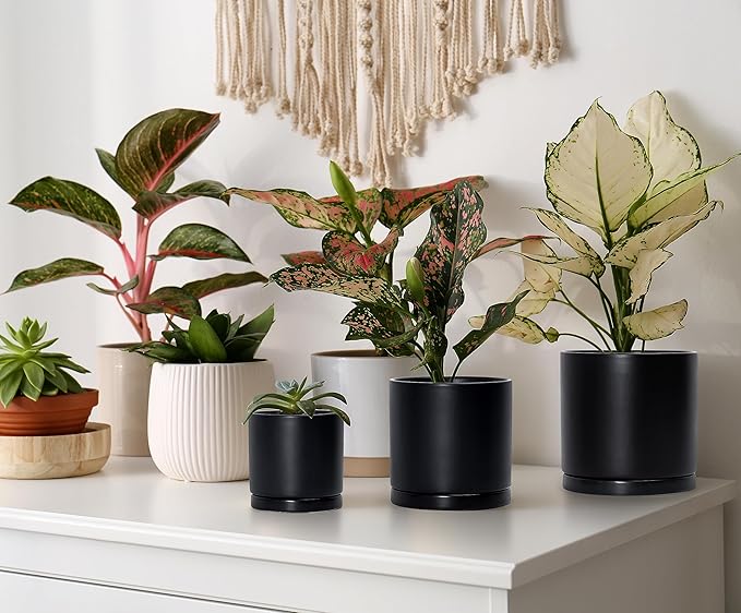 D'vine Dev Black Terracotta Pots for Plants, 4.2 Inch 5.3 Inch 6.5 Inch, Succulent Planter Pot with Drainage and Saucer, 40-T-A-2