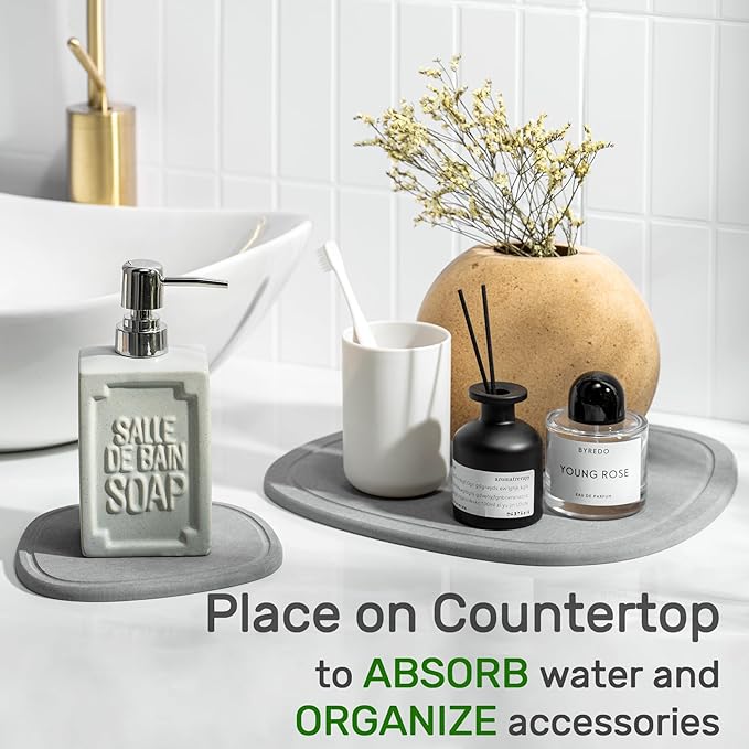 - 【Decorative design】The absorbent stone planter tray adds a natural & organic touch for indoor décor. Along with plants, the plant plate catch water indoor plant not only brings the nature in home and office, but also protects the surface of furniture & floor with Non-Slip Feet.