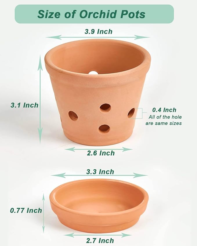 - Perfect Size and Classic: The clay orchid pots for plants, 3.1 inches in height, 4 inches in outer diameter, 2.5 inches in bottom diameter. And the orchid side body specially designed lots of holes help for air circulation and keep root healthy, it's orchid first choice.