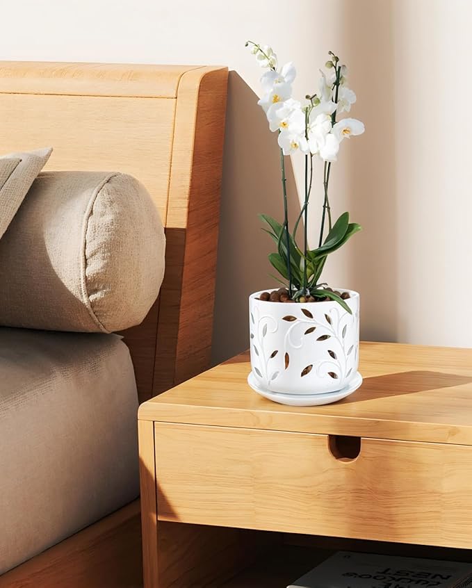 - Solve your troubles: The leaf shaped ventilation holes around this ceramic orchid planter and the drainage holes at the bottom can effectively solve the problems of air circulation and drainage, protect the roots of the orchid, provide an appropriate amount of water, and help it thrive.