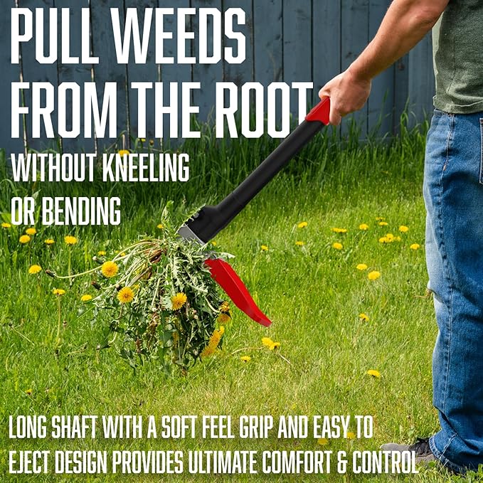 - Stand Up Weeder: Say goodbye to bending over! Say hello to our stand up weeder, a weed puller tool Wooden stand up heavy duty 4-Claw designed to make weed pulling a breeze.