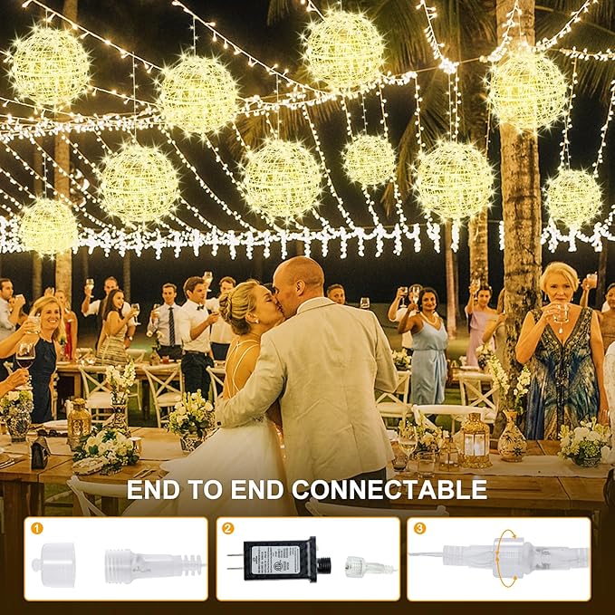 - 【Outdoor Globe Lights with 8 Vibrant Modes】 These hanging globe lights offer 8 distinct lighting modes - combination, wave, sequential, slow glow, chasing/flash, slow fade, twinkle/flash, and steady on. They are the perfect addition to elevate your garden, bistro, balcony, wedding, birthday celebration, Christmas party, or any other special occasion.
