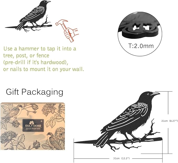 - [EASY INSTALLATION]: This metal bird tree stake is a breeze to set up. Use a hammer to tap it into a tree, post, or fence (pre-drill if it's hardwood), or nails to mount it on your wall. Whether you're decorating your garden, patio, or home, our metal bird decor makes it easy.In any case, you have a problem with products, just contact us, we will help you solve the problem as soon as possible.
