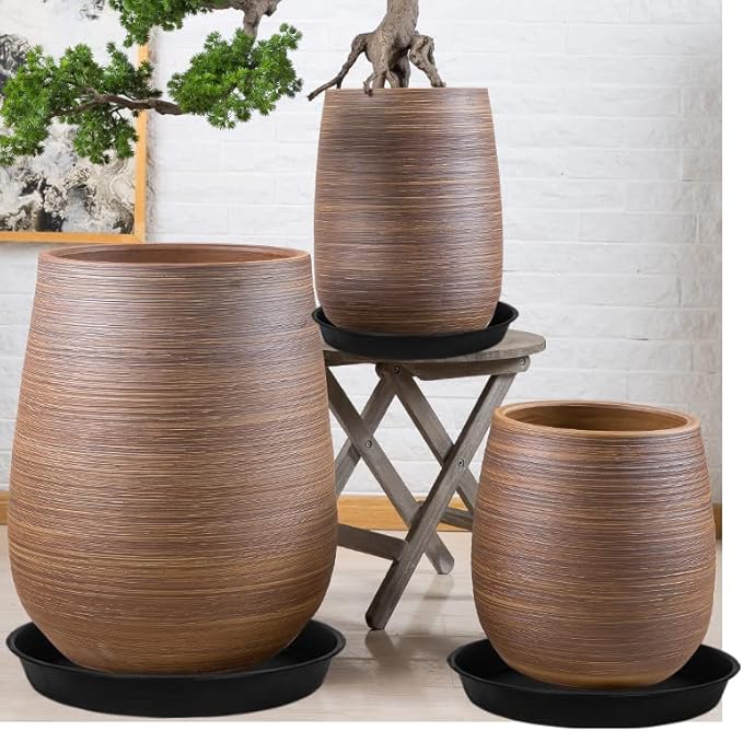 12/10/9 inch Large Self Watering Pots, Planter, Plant Pots with Mesh Drainage Holes for Indoor Outdoor Garden Plants, Plastic Flower Pots with Removable Deep Reservoir, Black with Brown