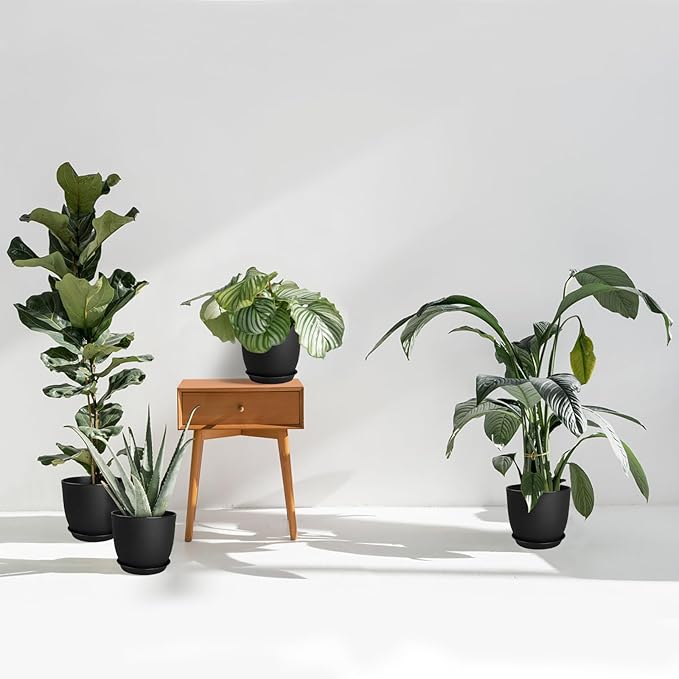 - 【Stylish Design】-These 8 inch plant pots feature a modern and stylish black design that complements various indoor and outdoor settings. Their sleek appearance and clean lines make them an ideal choice for any garden, balcony, or indoor space.