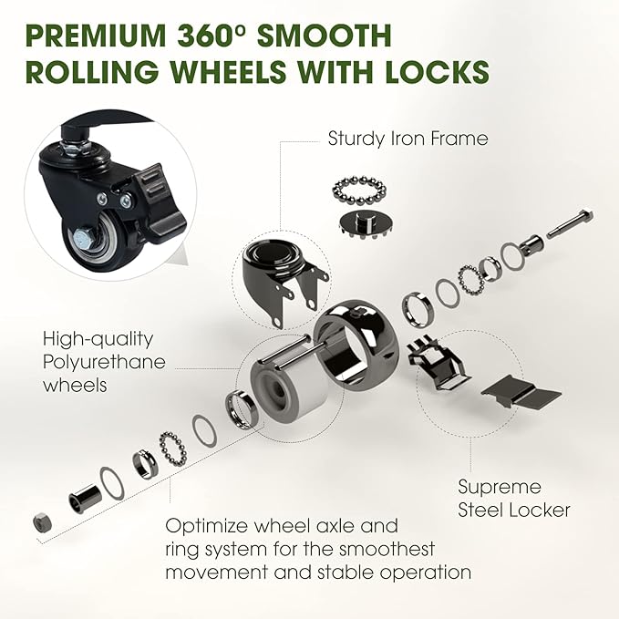 - 369° SMOOTH ROLLING WHEELS: Polyurethane caddy wheels rotate smoothly on various surfaces; Lockable to prevent movement, great for plants