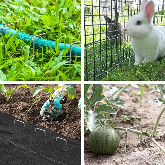 - APPEARANCE- Our landscape pins are made of heavy-duty galvanized steel. They are so strong to insert into the ground with adjustable width.