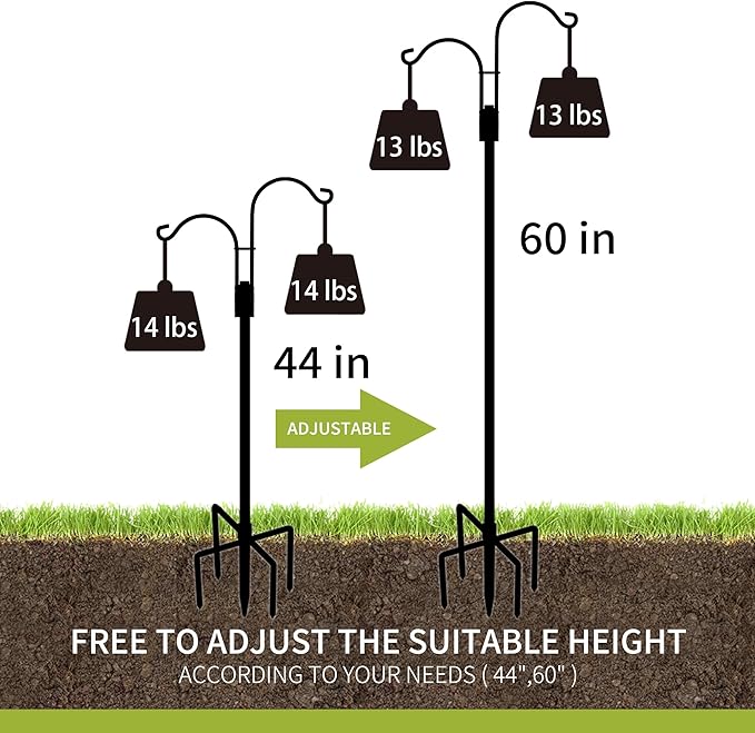• Versatile And Multi Purpose: Thanks to the sturdy build coupled with the double arm design, our shepherds hook for outside provide the perfect fit for hanging solar lanterns, flower baskets, plant pots, hummingbird feeders, wind chimes, and more to complement any outdoor space