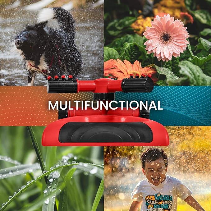 Joeys Sprinkler for Yard, Rotating Garden Sprinkler for Large Area Coverage, Lawn and Yard Sprinklers (Red)