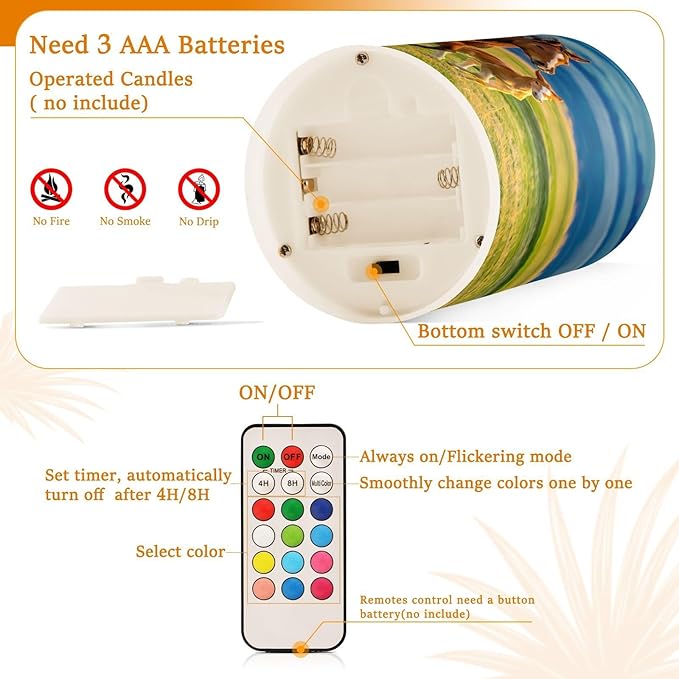 - Convenient Remote Functions: Includes an 18-key remote controller with a timer. You can control these candles remotely when they are placed somewhere difficult to touch. Set 4H/8H timers will save you trouble turning them on/off, they will come back on automatically at the same time every day. Also, you can adjust the light color as you want