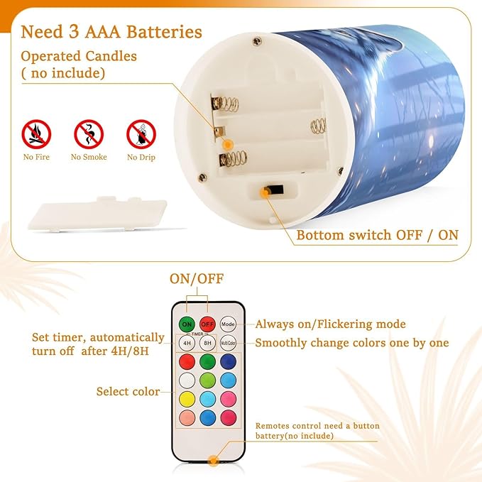 - Convenient Remote Functions: Includes an 18-key remote controller with a timer. You can control these candles remotely when they are placed somewhere difficult to touch. Set 4H/8H timers will save you trouble turning them on/off, they will come back on automatically at the same time every day. Also, you can adjust the light color as you want