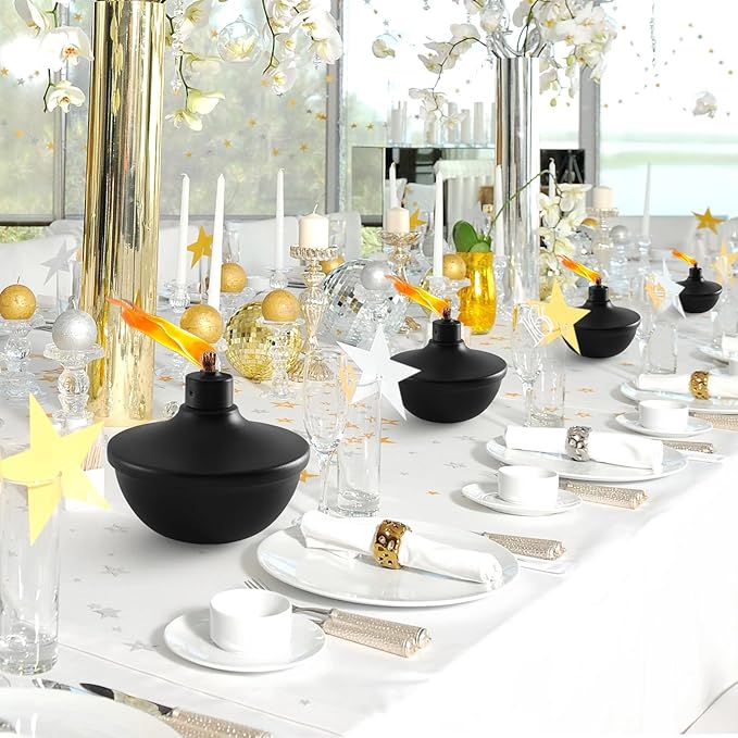 - ✿High Quality Metal Table Top Torches: Our Metal Table Top Torches made of premium metal. durable and lightweight. Each tabletop torches hold approximately 23.5 oz of fuel, allowing the burning time more than 18 hours .