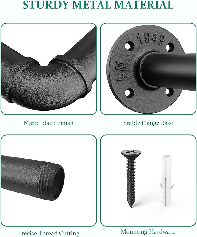 • Metal Hanging Plant Bar: Crafted from robust iron and coated with a sleek black anti-rust matte paint, this plant bar is built to longevity while embodying an industrial aesthetic that elevates your space